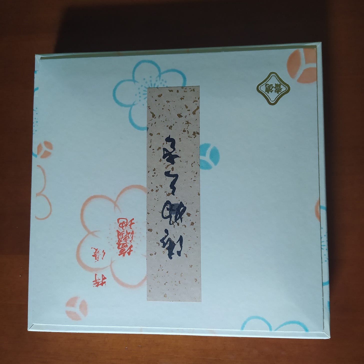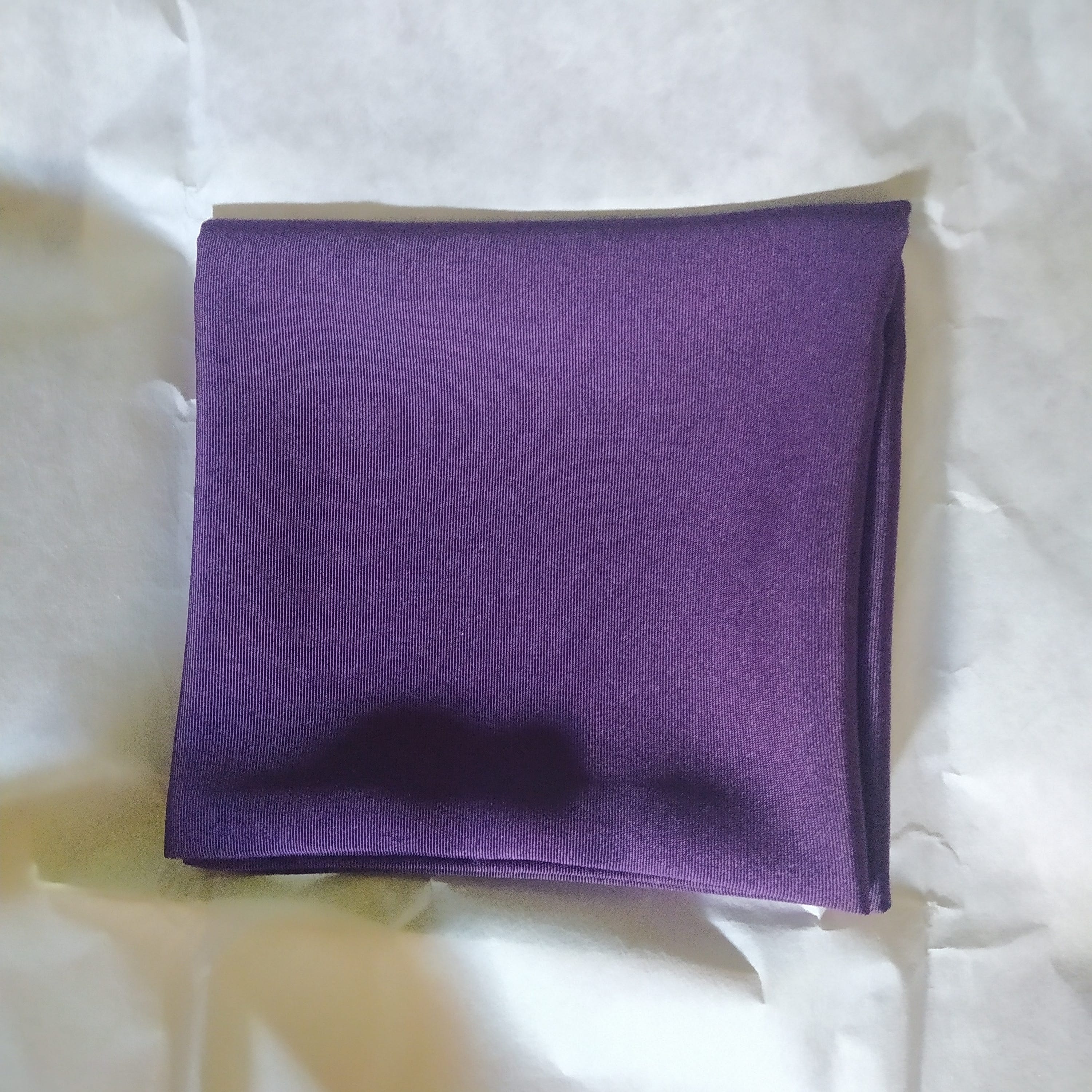 This is a fukusa, the silk cloth that is used for ritually purifying some of the implements during the Tea Ceremony. Purple is the usual color for men, orange for women. This ‘Gokujo Fukusa’ is made by historic textile craft store Kitamura Tokusai in Kyoto, with 300 years of history producing textiles for chanoyu. It is made of the finest quality silk, and carefully hand sewn.
